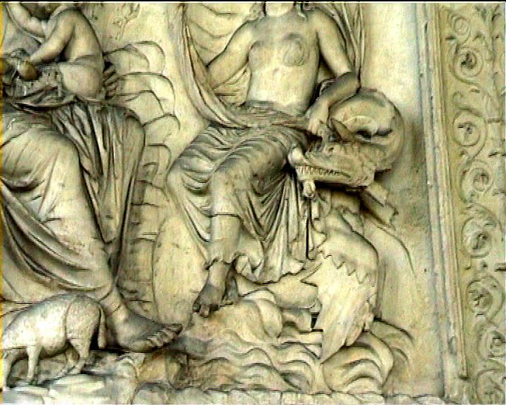 Ara Pacis Augustae classical bas-reliefs in honour of Augustus NB video, marble by Senate on Augustus' victorious return from Spain & Gaul 13 BC Image: 10185 | |