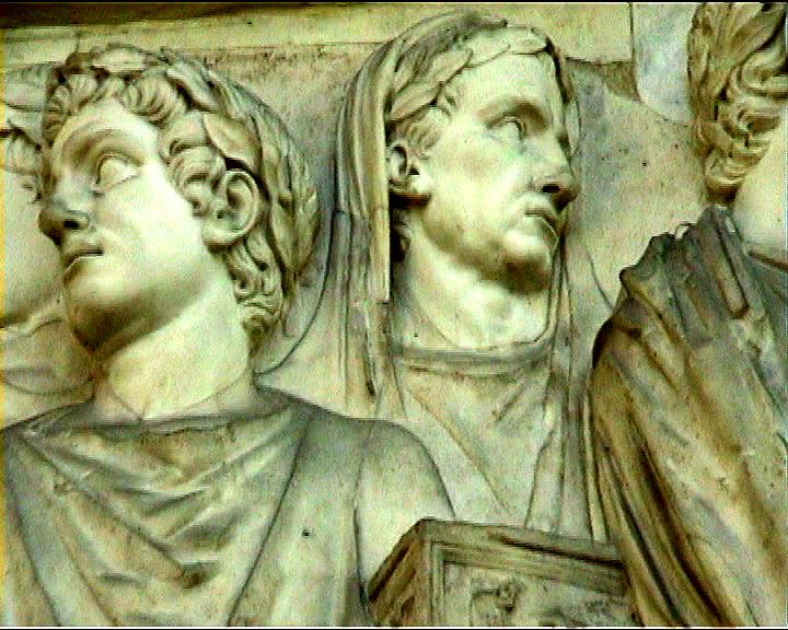 Ara Pacis Augustae classical bas-reliefs in honour of Augustus NB video, marble by Senate on Augustus' victorious return from Spain & Gaul 13 BC Image: 10260 | |