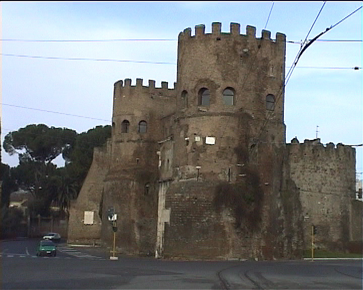 Aurelian walls of Rome 270-5AD view: Porta S Paolo Aurelian gate, brick and marble reg.270-5ff view Image: 15257 | |