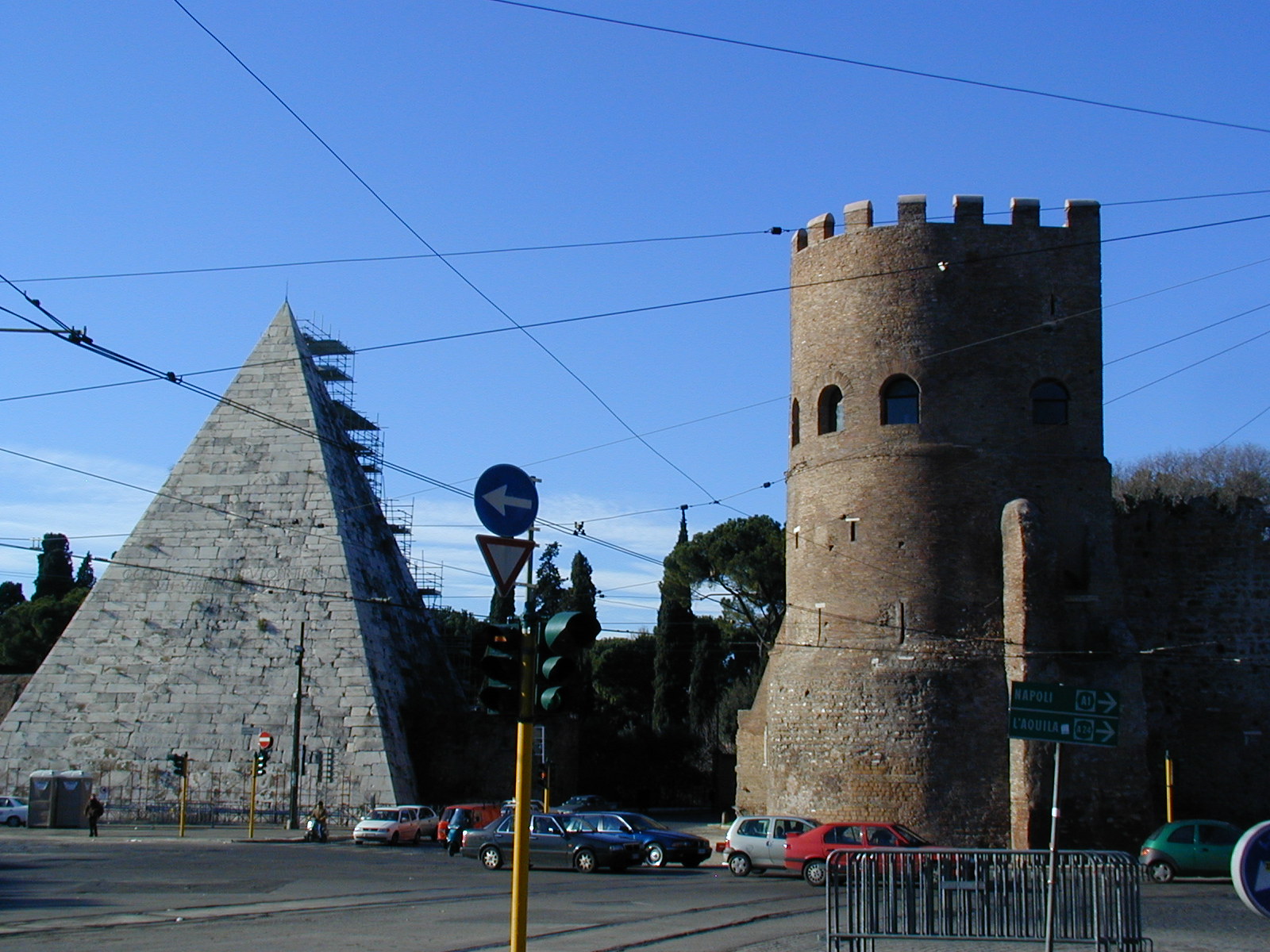Aurelian walls of Rome 270-5AD view: Porta S Paolo Aurelian gate, brick and marble reg.270-5ff view Image: 13314 | |