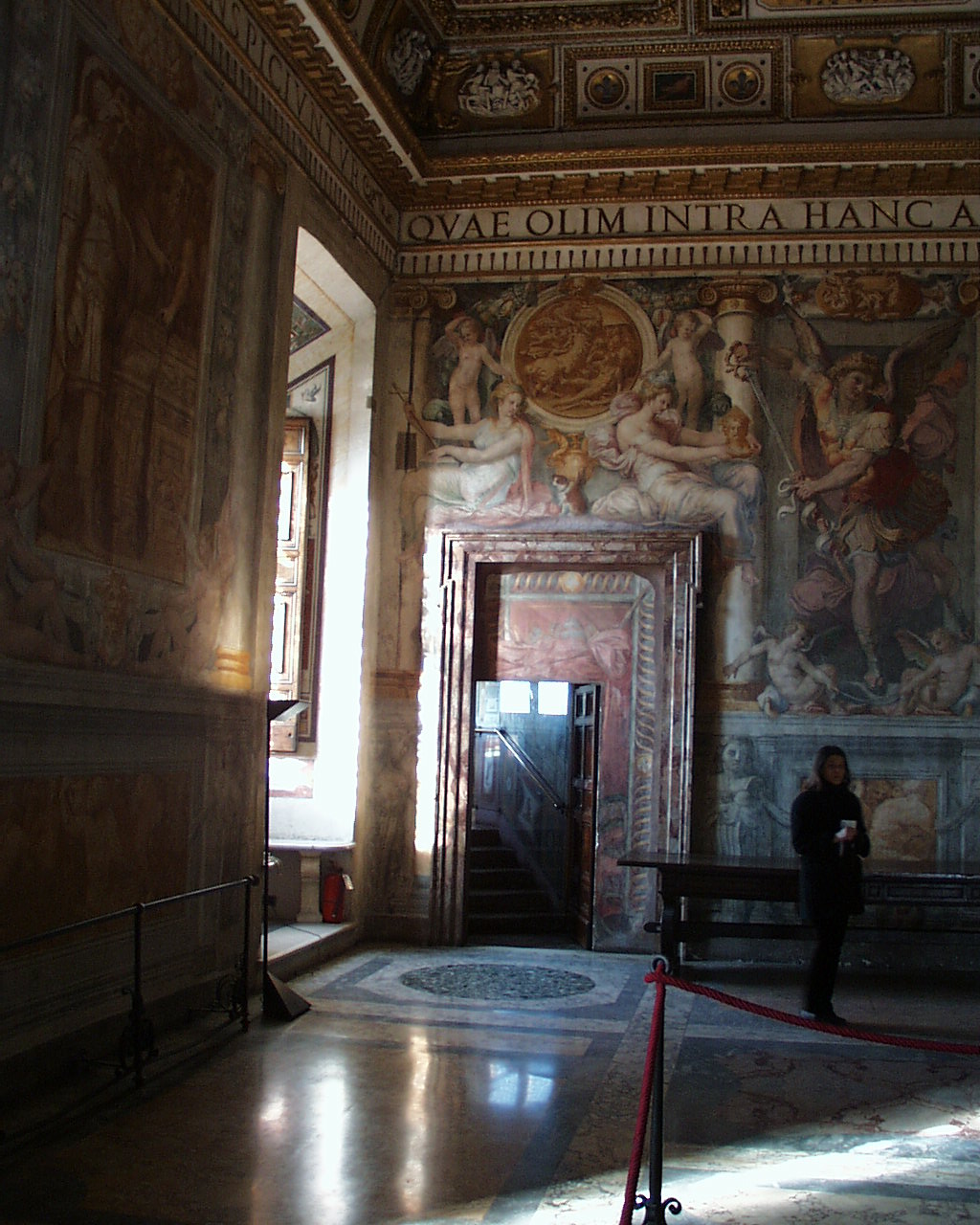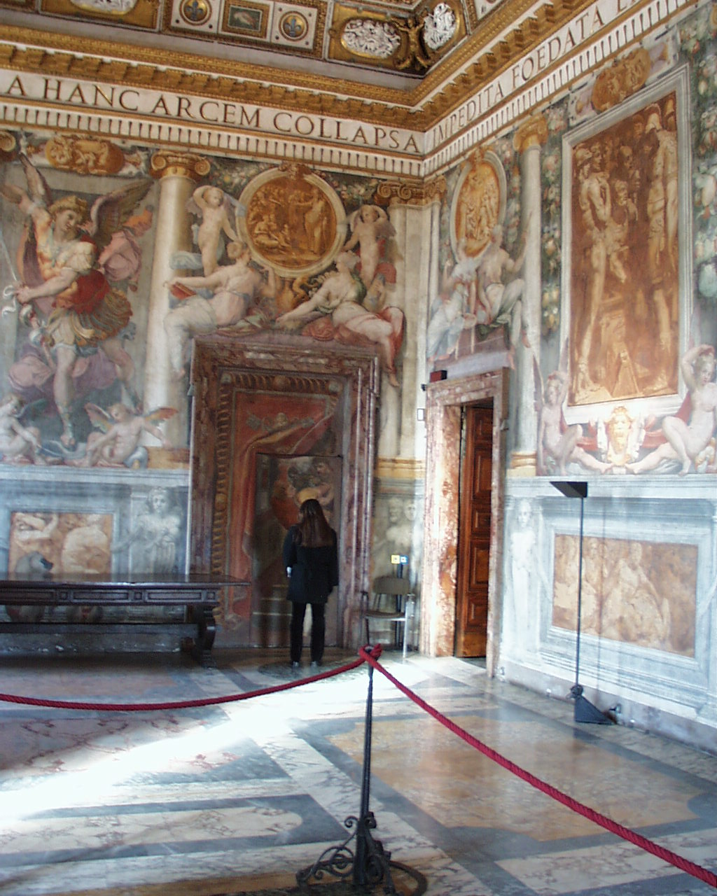 Castel Sant'Angelo interior: to sort Mausoleum of Hadrian etc tomb / military architecture, brick & travertine 130 AD & 16thC view Image: 9962 | |
