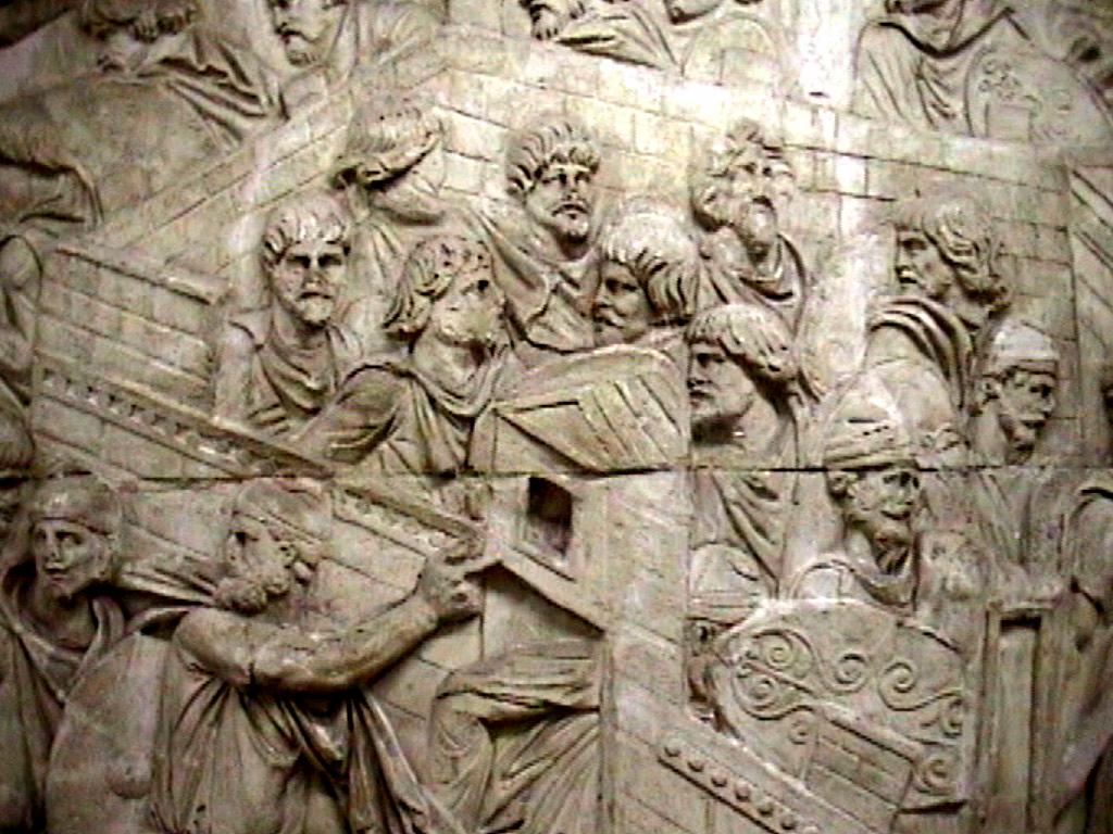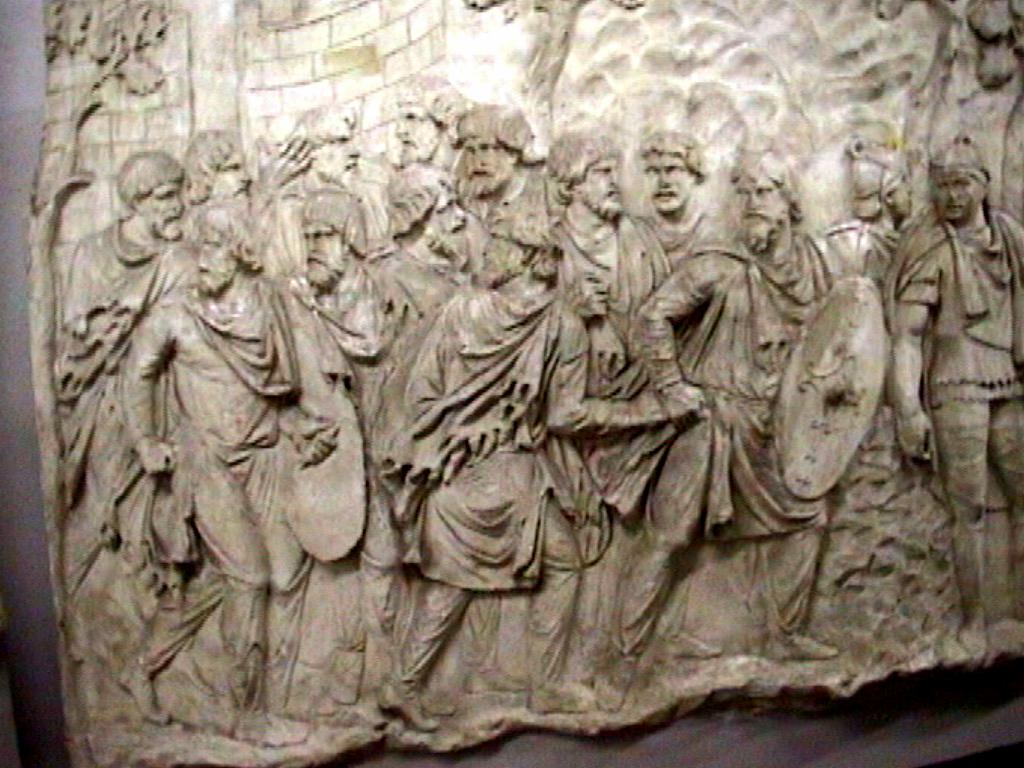 Column of Trajan cast in Museo della Civilta Romana EUR Trajan triumphal column (victory over Dacians), marble 113 AD view Image: 9600 | |