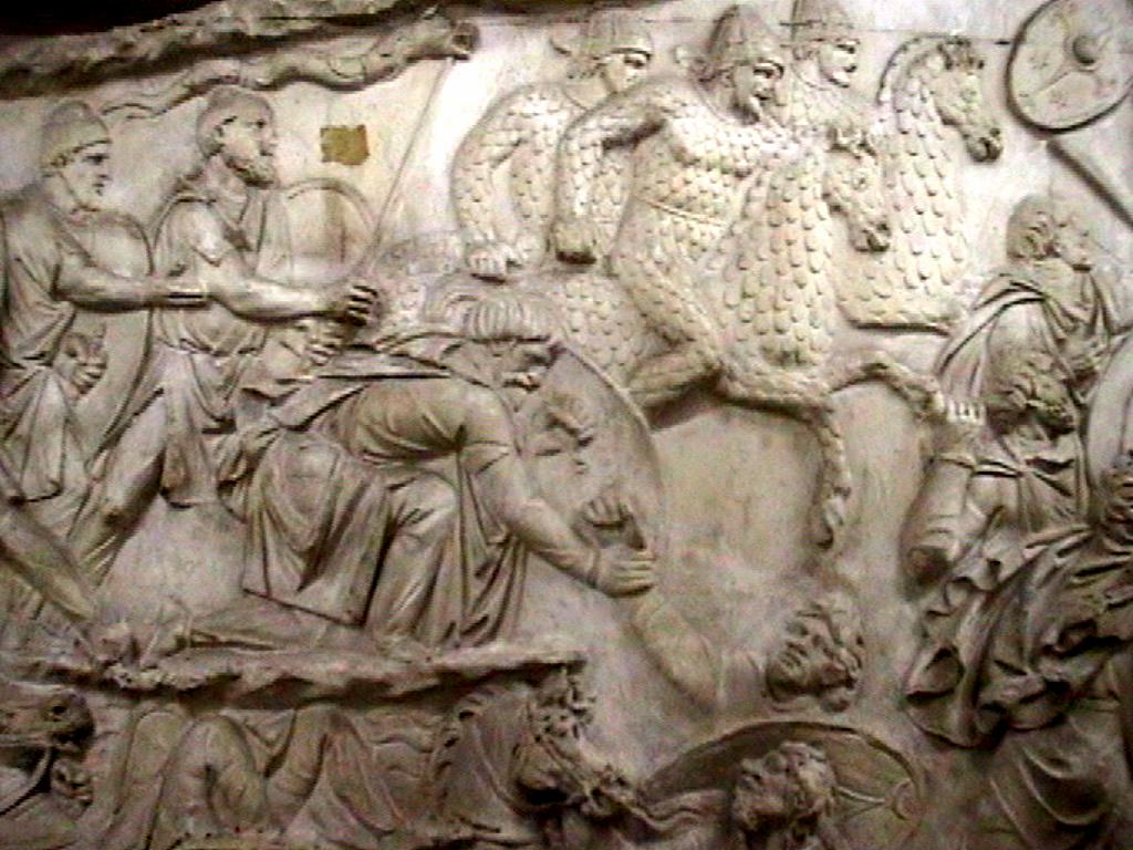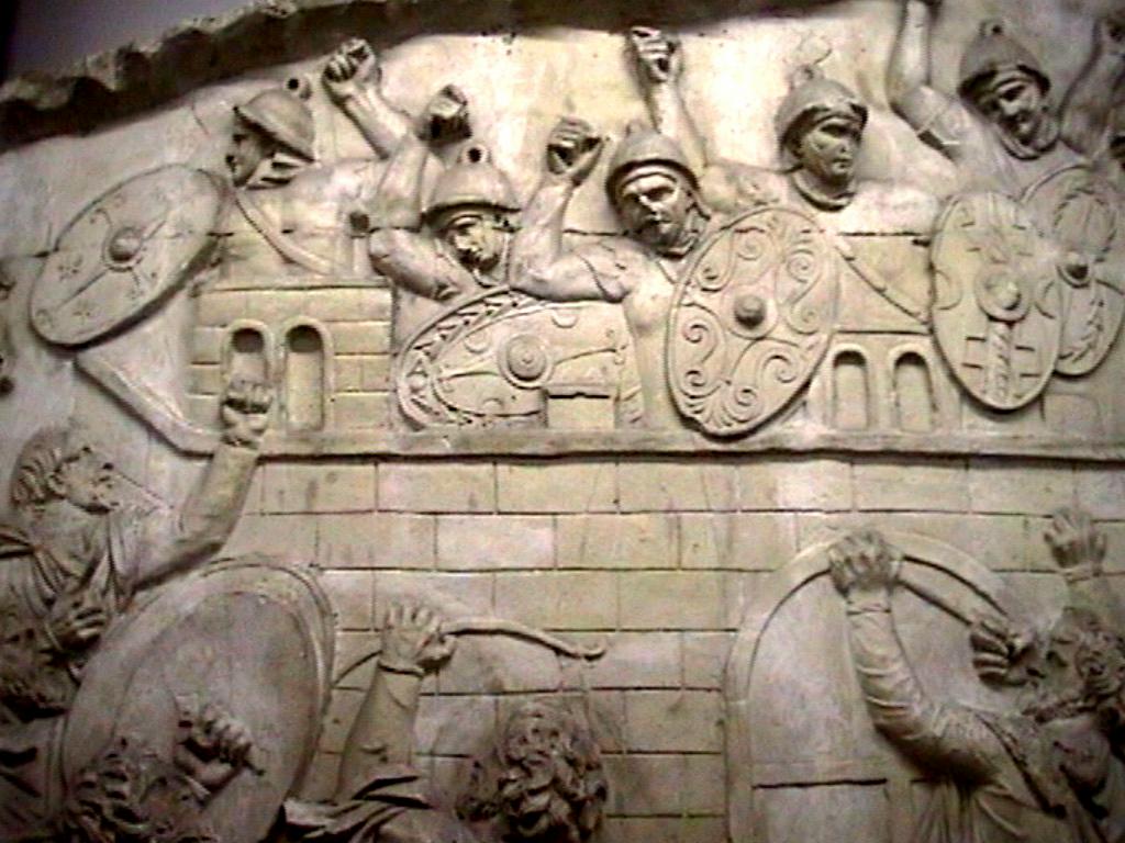 Column of Trajan cast in Museo della Civilta Romana EUR Trajan triumphal column (victory over Dacians), marble 113 AD view Image: 9654 | |