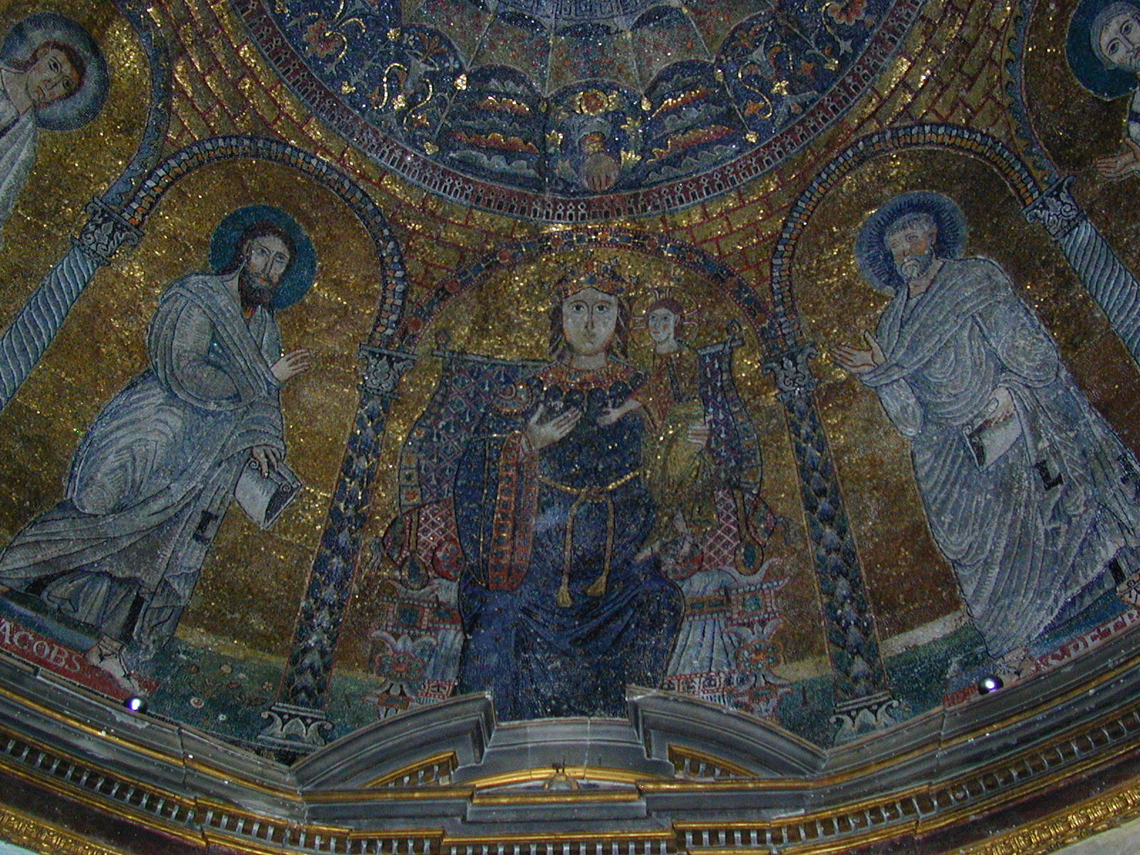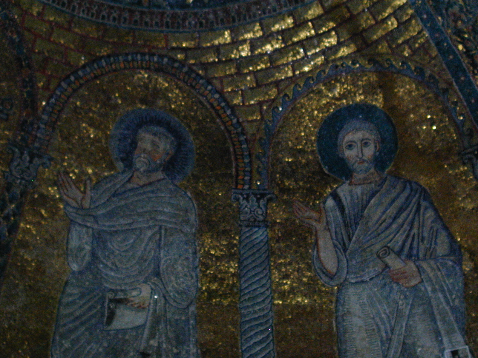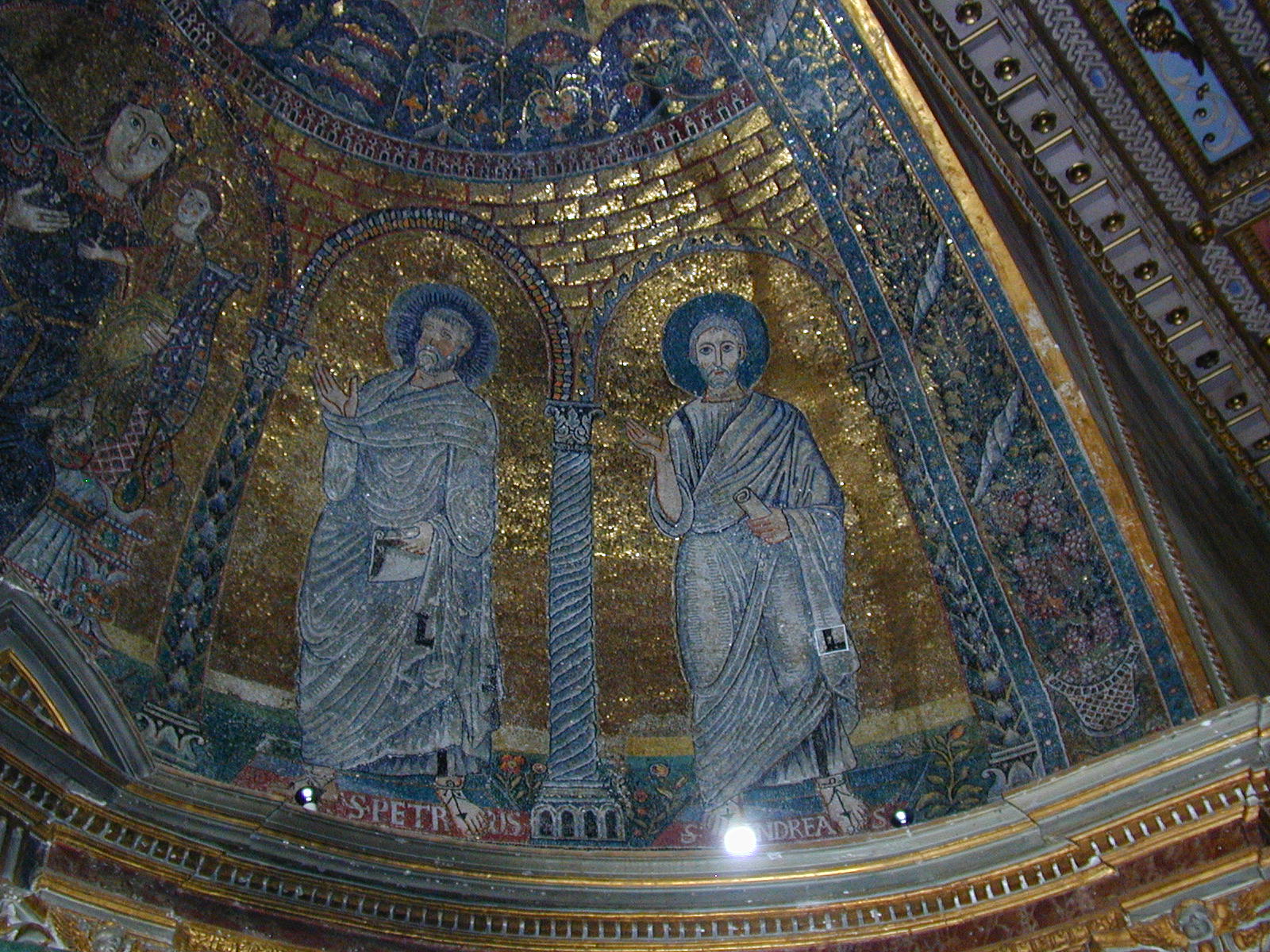 Francesca Romana rebuilt Honorius II -1130 interior apse mosaic: VandC with SPeter and Andrew , c.1160 Image: 1010477 | |