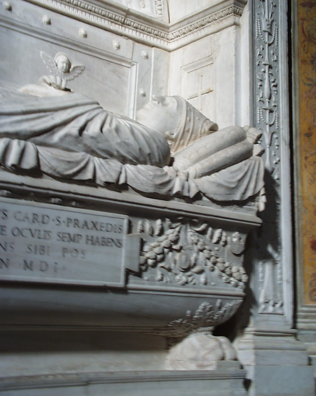 Maria del Popolo Baptismal - chapel, tomb of Card Antoniotto Pallavicini d.1501 (transferred from Peter's in 1596 with new inscription) date range? detail Image: 8030 | |