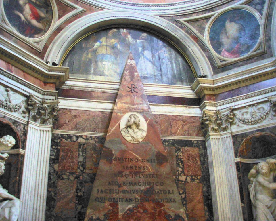 Maria del Popolo Chigi chapel Agostino Chigi d.1520 -, travertine c.1516ff Ag Chigi pyramid: detail Image: 156 | |