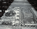 Maria del Popolo interior rebuilt under Sixtus IV -, travertine 1472-7 tomb slabs in nave Image: 8221 | |