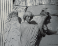 Maria del Popolo N transept Cardinal Bernardo Lonate of Pavia tomb, marble d.1497 detail: putto Image: 748 | |