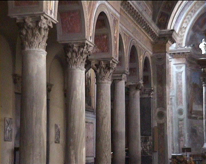 Nicola in Carcere 11thC interior spolia columns and capitals of nave arcades , Image: 7216 | |