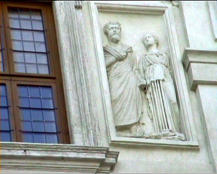 Villa Medici views NB video villa , rebuilt 1574 antiquities in garden and on villa garden facade Image: 15538 | |