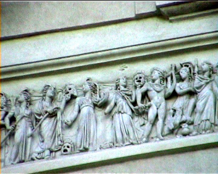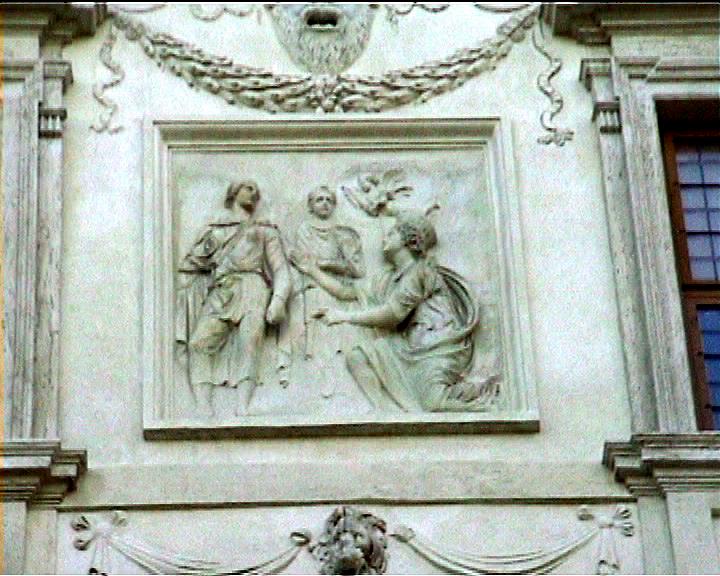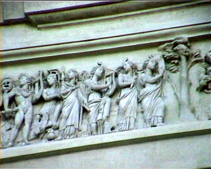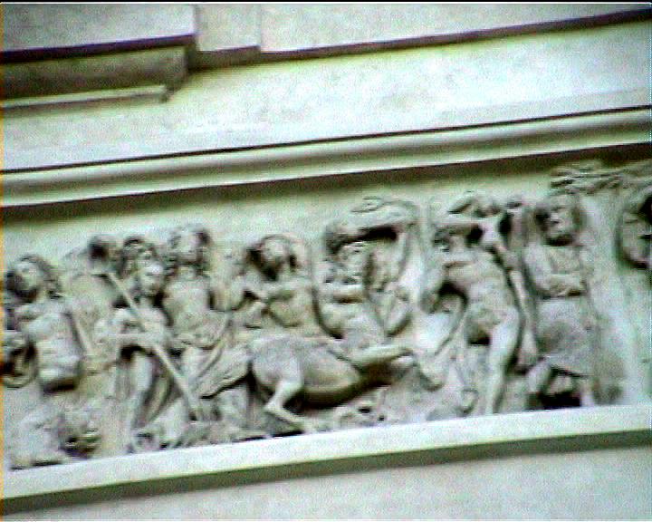 Villa Medici views NB video villa , rebuilt 1574 antiquities in garden and on villa garden facade Image: 15552 | |
