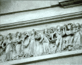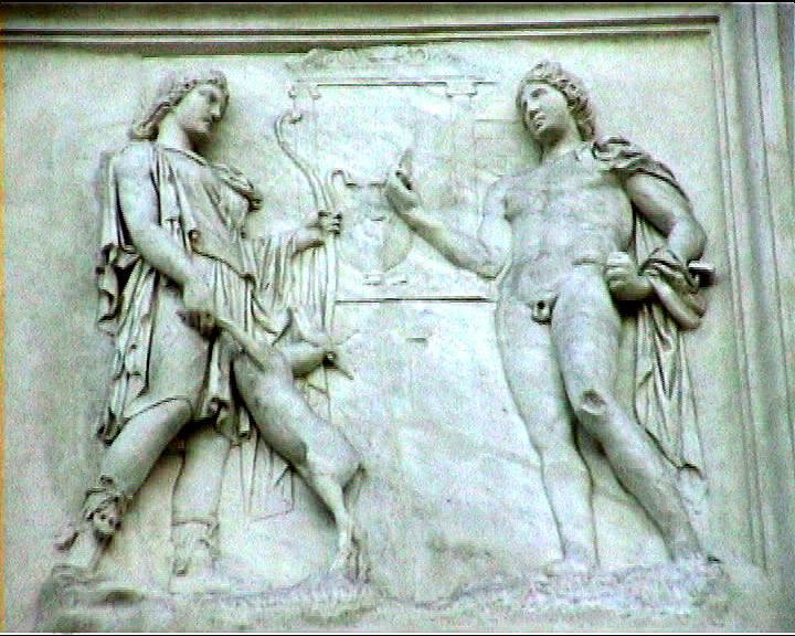 Villa Medici views NB video villa , rebuilt 1574 antiquities in garden and on villa garden facade Image: 15545 | |