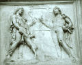 Villa Medici views NB video villa , rebuilt 1574 antiquities in garden and on villa garden facade Image: 15551 | |