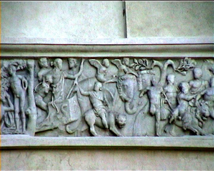 Villa Medici views NB video villa , rebuilt 1574 antiquities in garden and on villa garden facade Image: 15589 | |