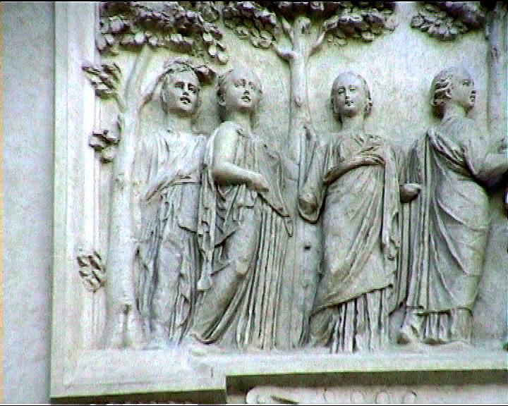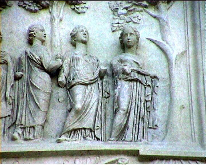 Villa Medici views NB video villa , rebuilt 1574 antiquities in garden and on villa garden facade Image: 15585 | |