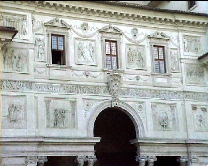 Villa Medici views NB video villa , rebuilt 1574 antiquities in garden and on villa garden facade Image: 15581 | |