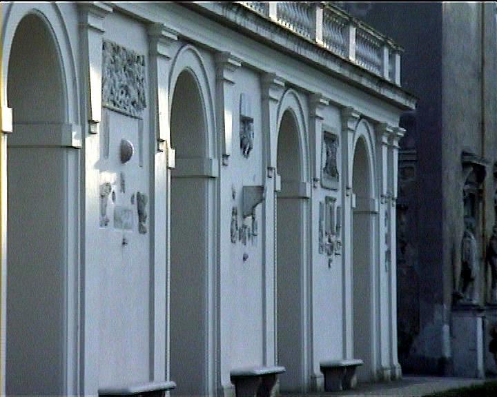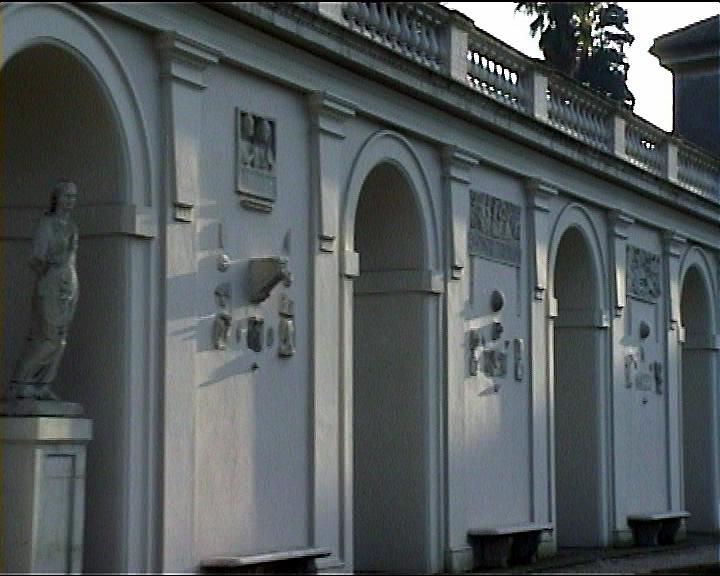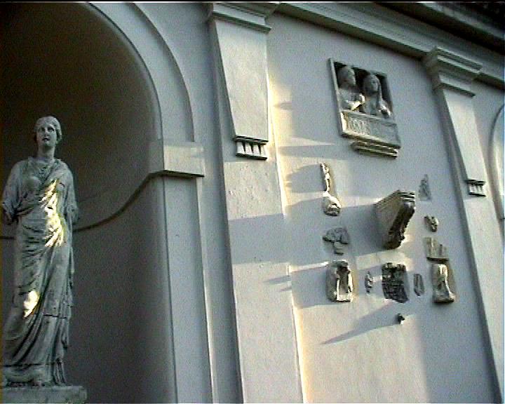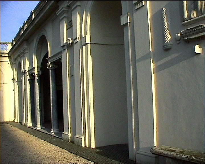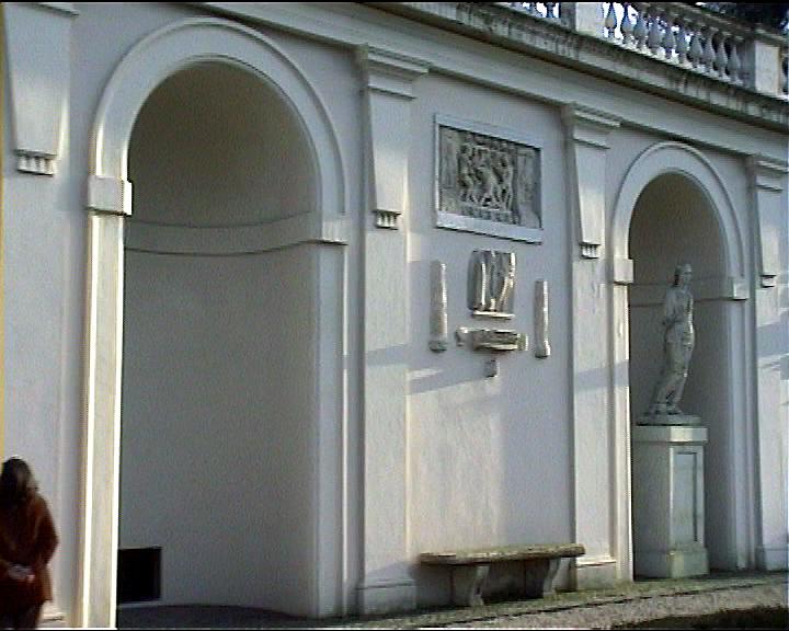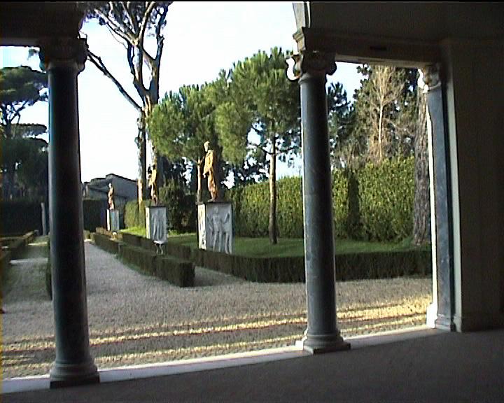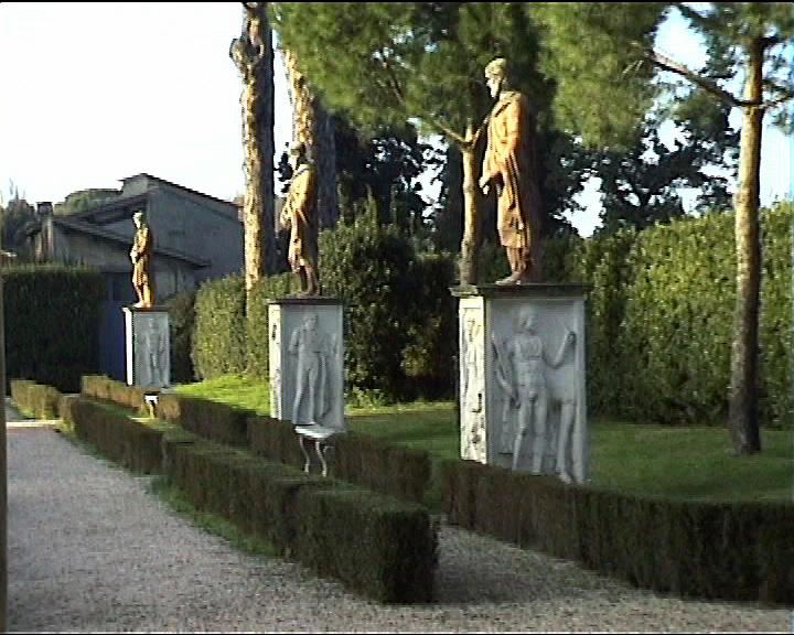 Villa Medici views NB video villa , rebuilt 1574 antiquities in garden and on villa garden facade Image: 15669 | |