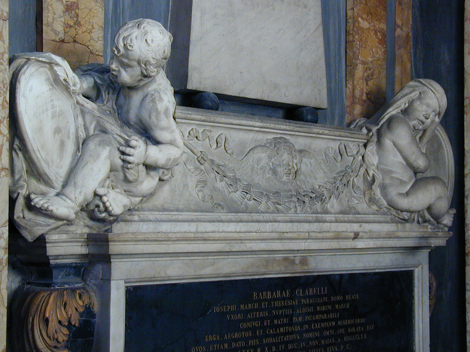 S Maria d'Aracoeli Location: Cappella Michele Arcangelo (Tebaldeschi) Patron: Barbara Clarelli marble Date: d.1870 Subject: views Image: 1012265 | |