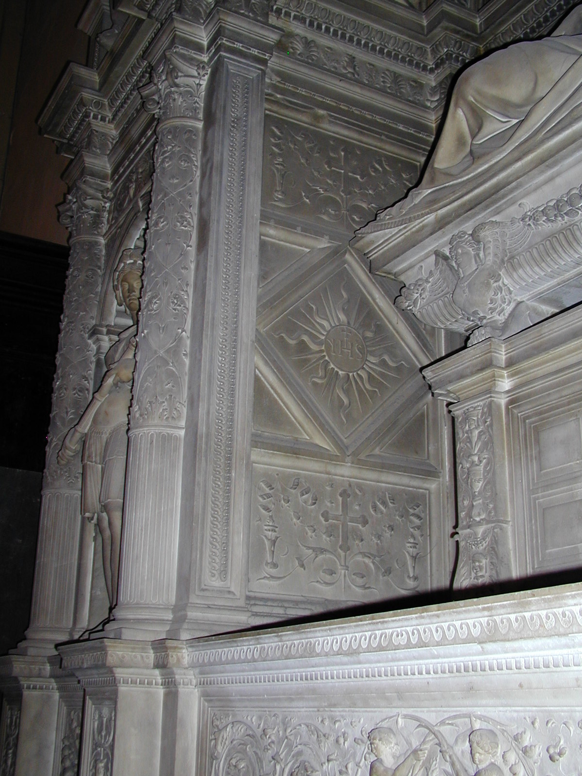 S Maria del Popolo Location: retrochoir Patron: Cardinal Girolamo Basso della Rovere marble Date: d.1507 Subject: detail: arch and sarcophagus Image: 566 | |