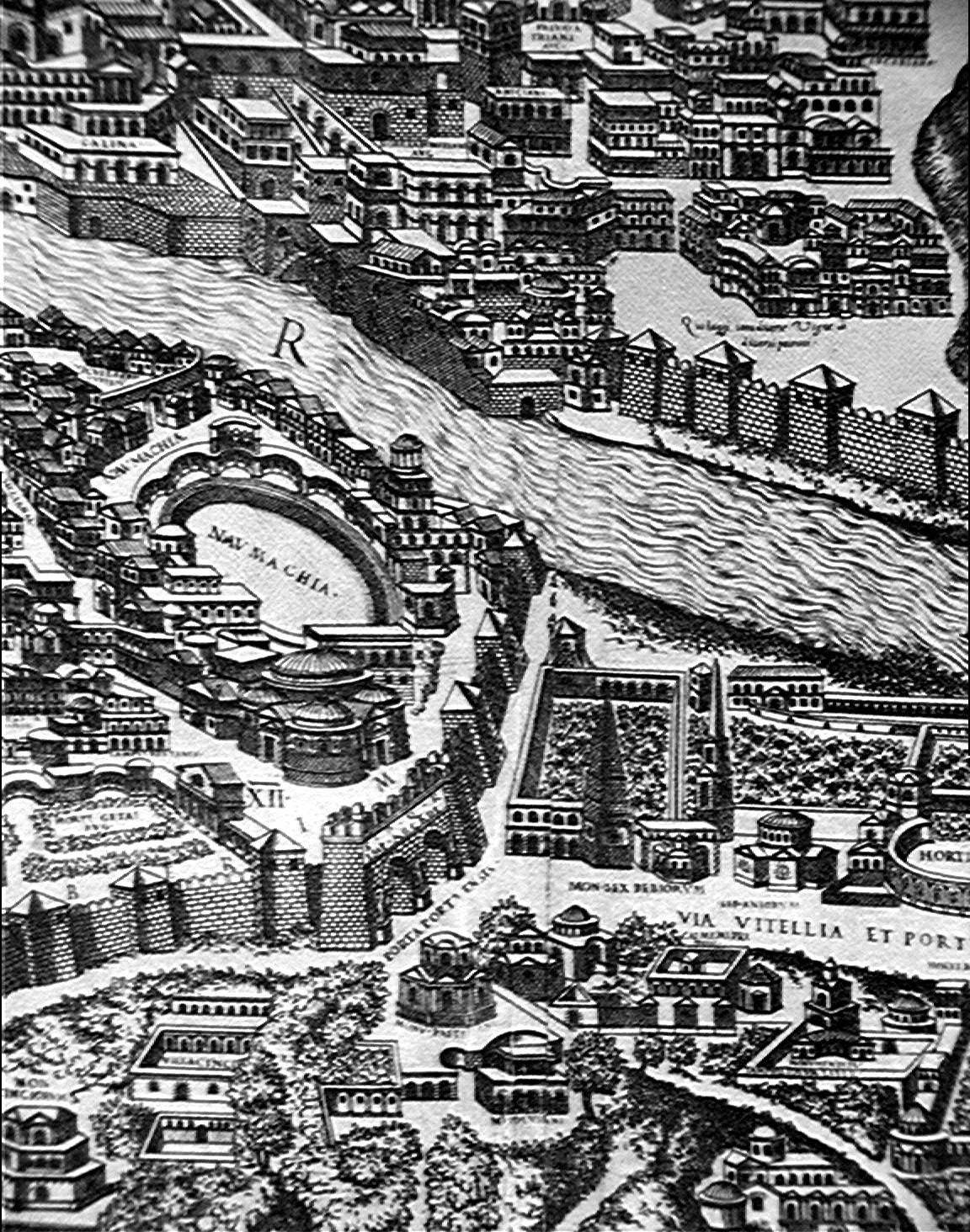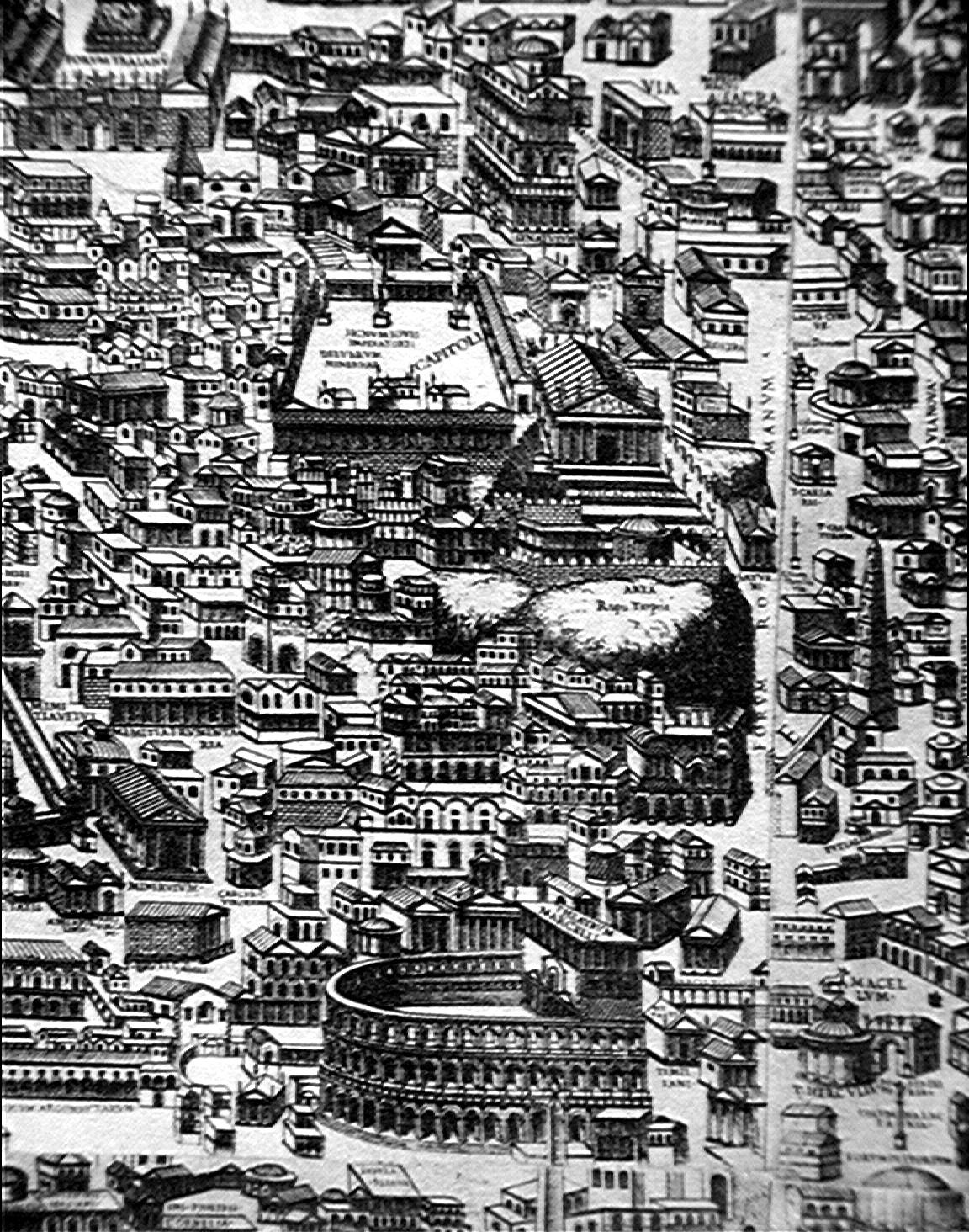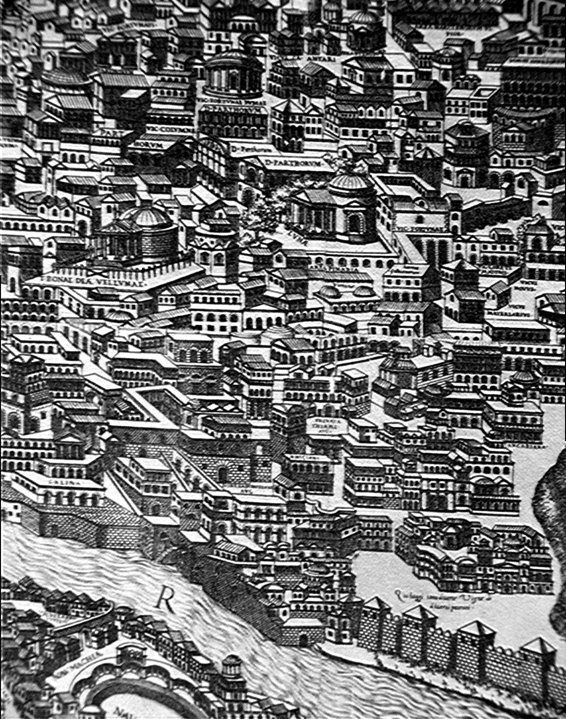 Pirro Ligorio Pianta di Roma 1561 Rome:Trastevere:Marcello theatre;campidoglio:det. plan imagesize: 1152 by 1464 pixels