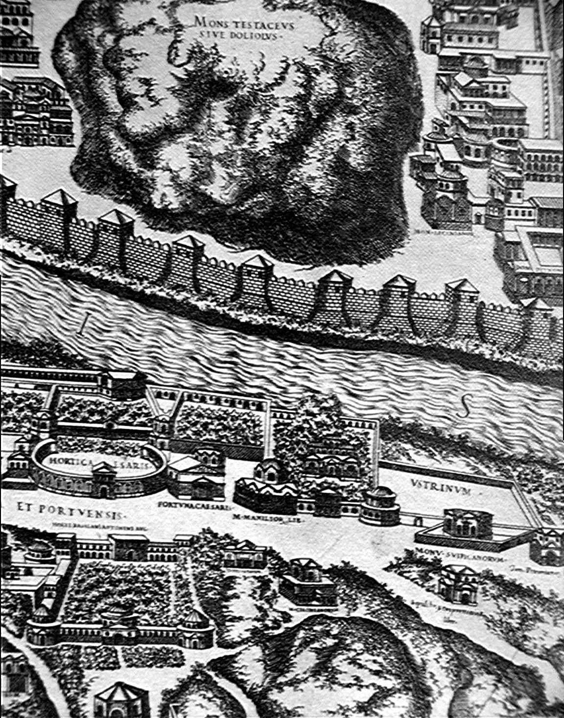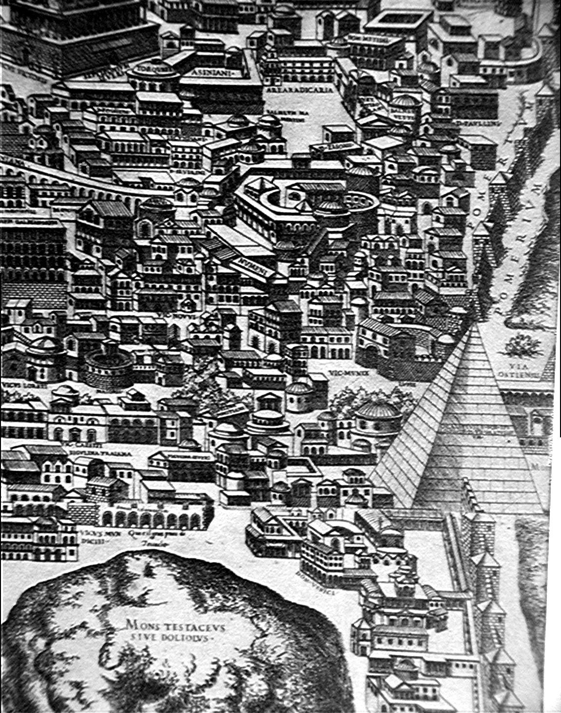 Pirro Ligorio Pianta di Roma 1561 Rome:Testaccio region; Temples of Antonius plan imagesize: 1152 by 1464 pixels