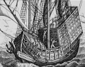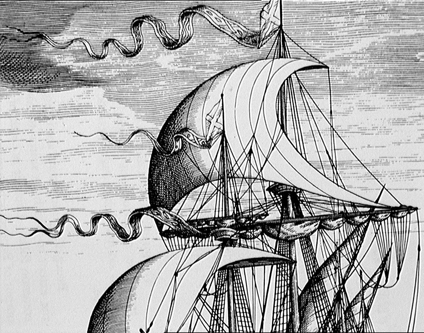 Man of war with small ships:detail