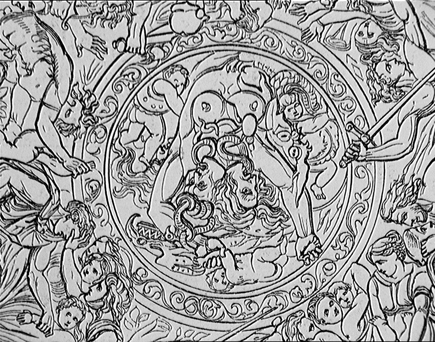 Arms ornamented shield depicting the Massacre of the Innocents:detail, Vecht Le Page-Moutier: Paris