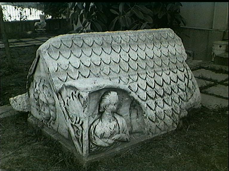 Turkey Adana Museum: funerary sarcophagus sarcophagus lid with corner busts | |