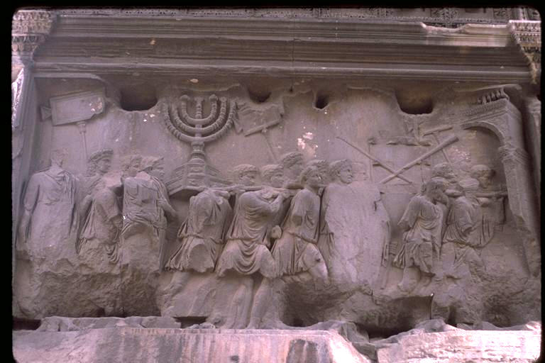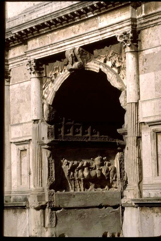 Arch of Titus - Rome: detail of C. arch [from W.] - showing Triumph of Titus relief panel - 81 A.D.