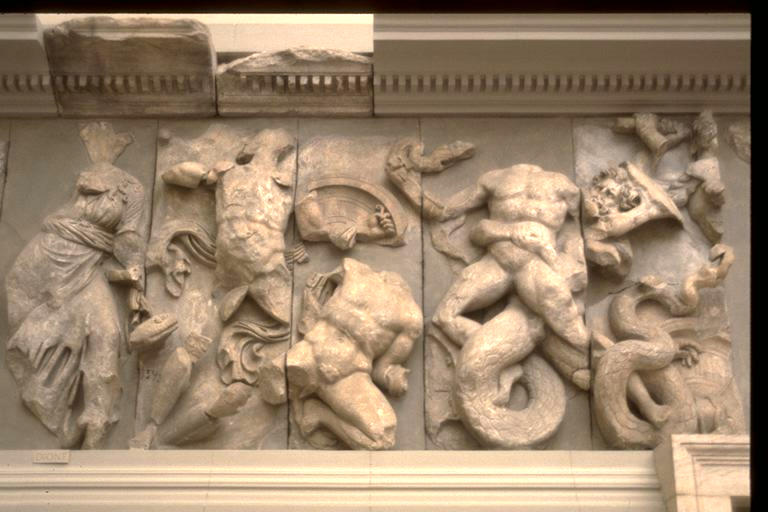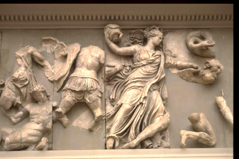 Great Altar of Zeus - Pergamon: the Moirae overwhelm two Giants - detail of N. frieze - ca. 180-175 B.C.