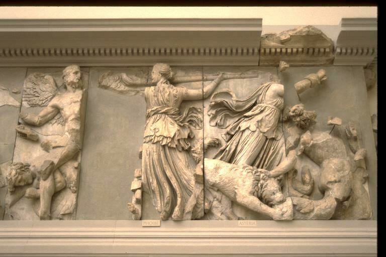 Great Altar of Zeus - Pergamon: the Titans Phoibe and her daughter Asteria - spirits of the morning and evening stars - attack a Giant - detail of S. frieze - ca. 180-175165-156 B.C.