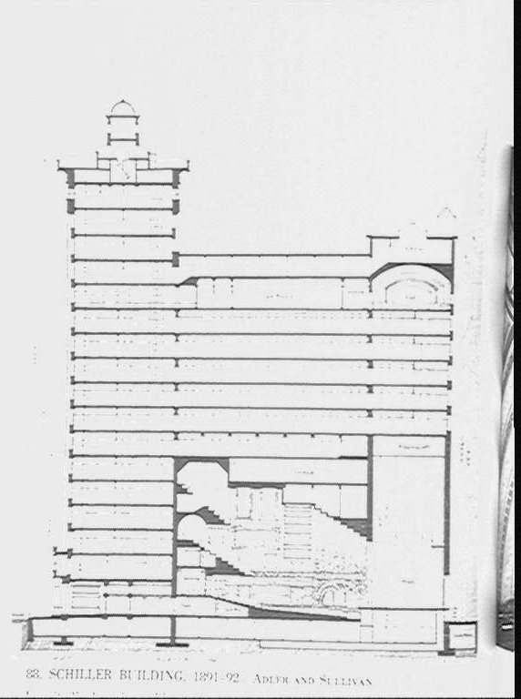 | Adler and Sullivan: 1892 Public bdg:theatre Chicago Schiller Bdg Upper stories of tower | |